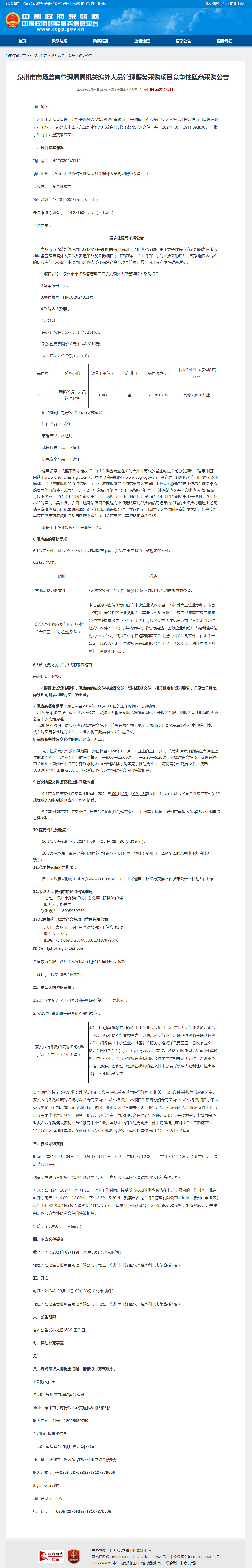 局机关编外人员管理服务采购项目竞争性磋商采购公告