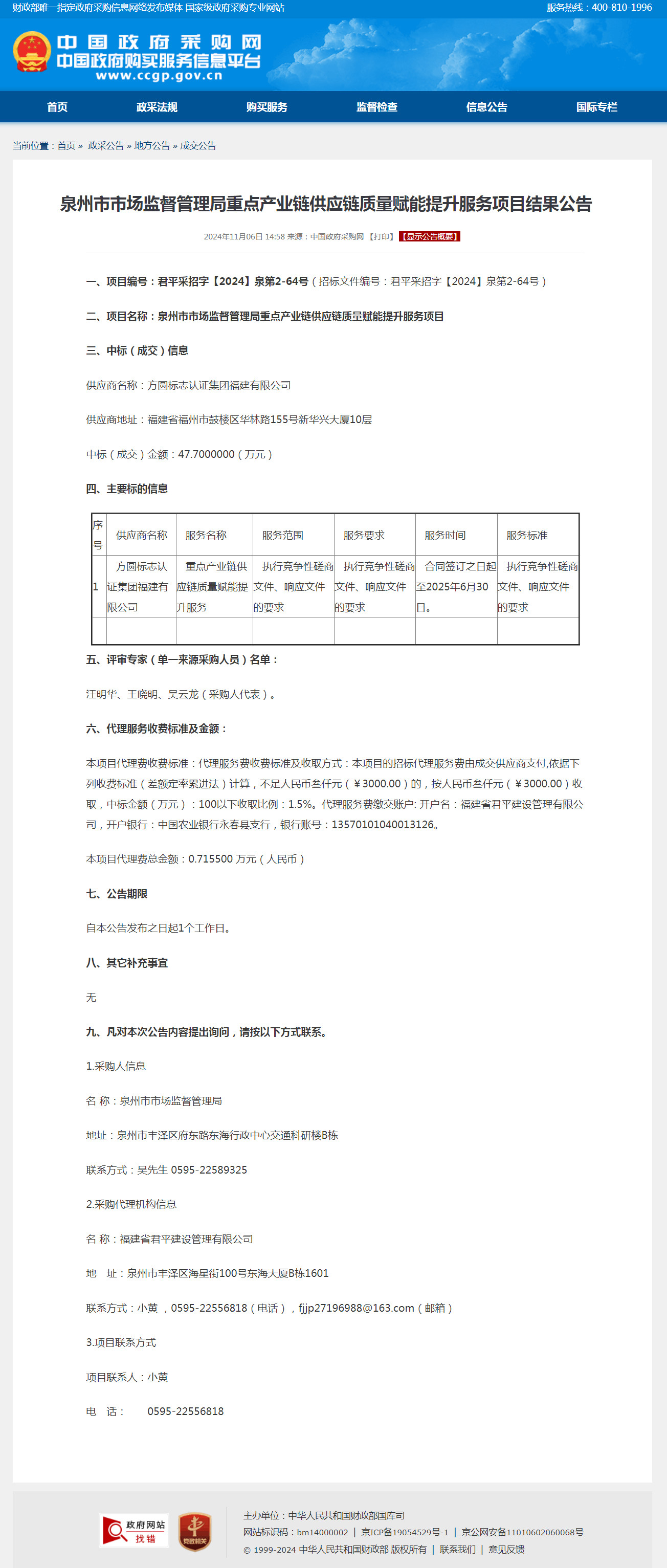 重点产业链供应链质量赋能提升服务项目结果公告