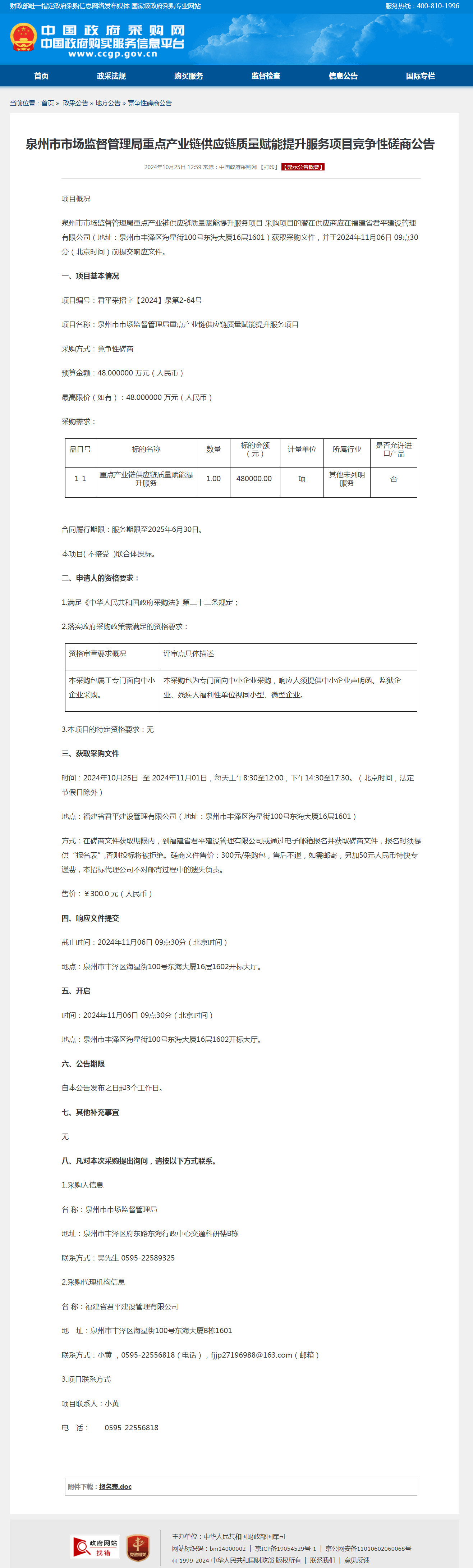 重点产业链供应链质量赋能提升服务项目竞争性磋商公告