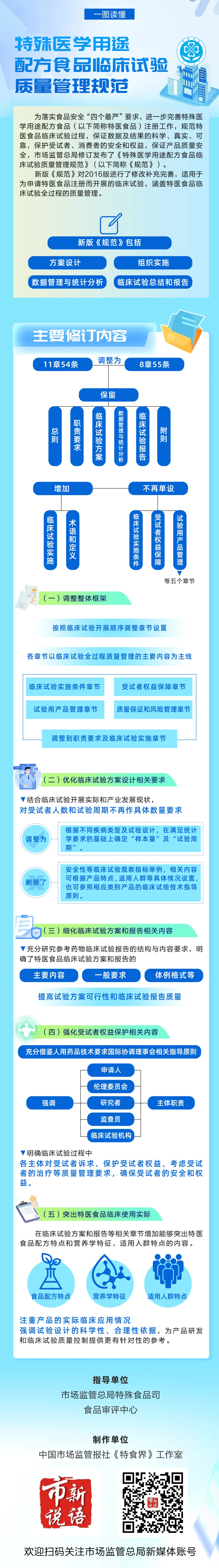 《规范》突出了特医食品临床使用实际。在临床试验方案和报告等相关章节增加能够突出特医食品配方特点和营养学特征、适用人群特点的内容,注重产品的实际临床应用情况,为产品研发和临床试验质量控制提供更有针对性的参考。