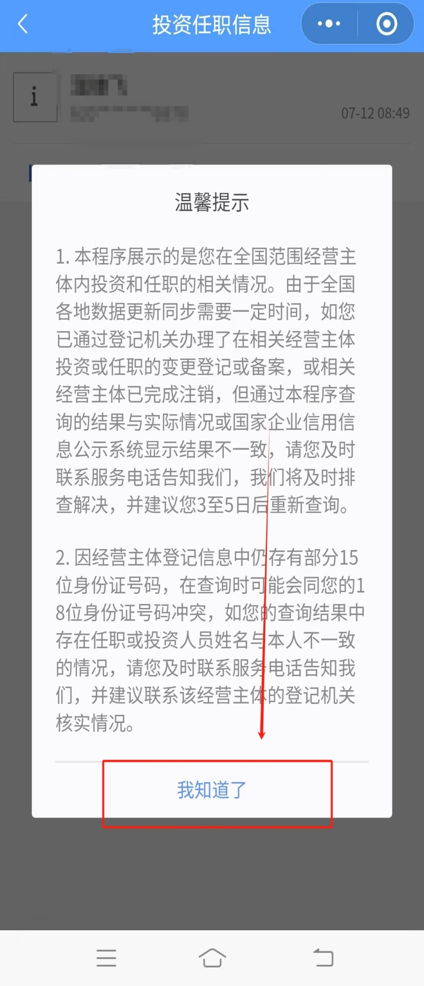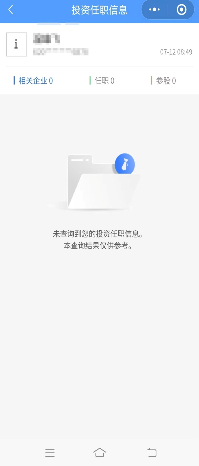 第十二步:查看或截取投资任职信息查询结果页面图片