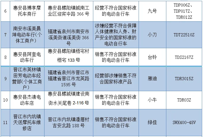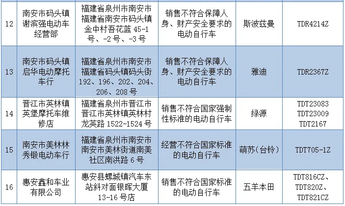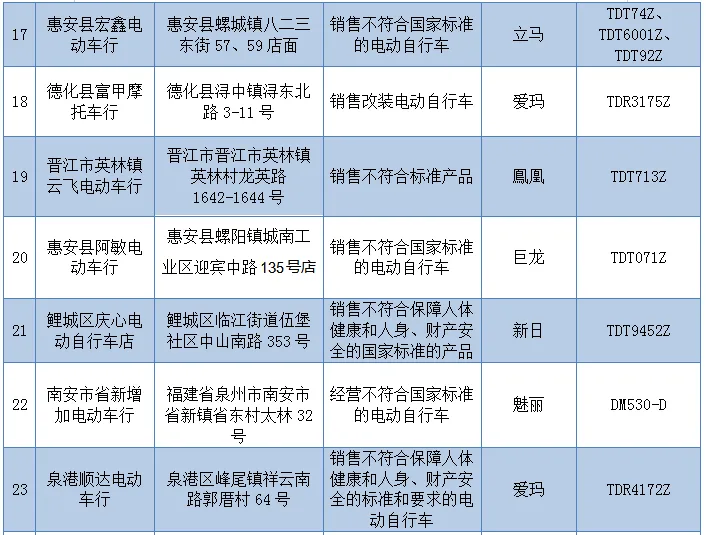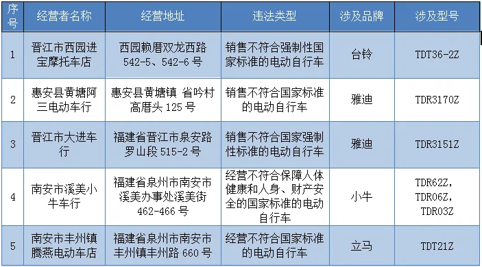 公布第二批电动自行车(电动车)违法违规经营者名单